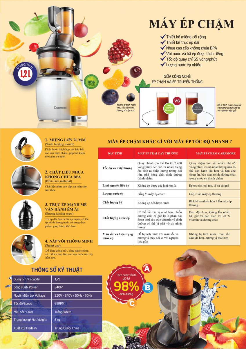 Khoang nướng được tối ưu hóa giúp lượng thức ăn được chế biến trong 1 lần sử dụng nhiều hơn. Nồi chiên nướng không dầu Caremore 12 lít thế hệ mới sử dụng công nghệ...