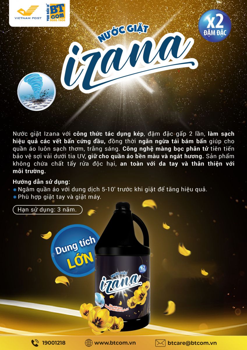 - Nước giặt Izana chứa công thức đậm đặc gấp 2 lần giúp sử dụng tiết kiệm hơn, tác dụng kép tăng hiệu quả làm sạch các vết bẩn cứng đầu, vết ố màu, diệt vi khuẩn.